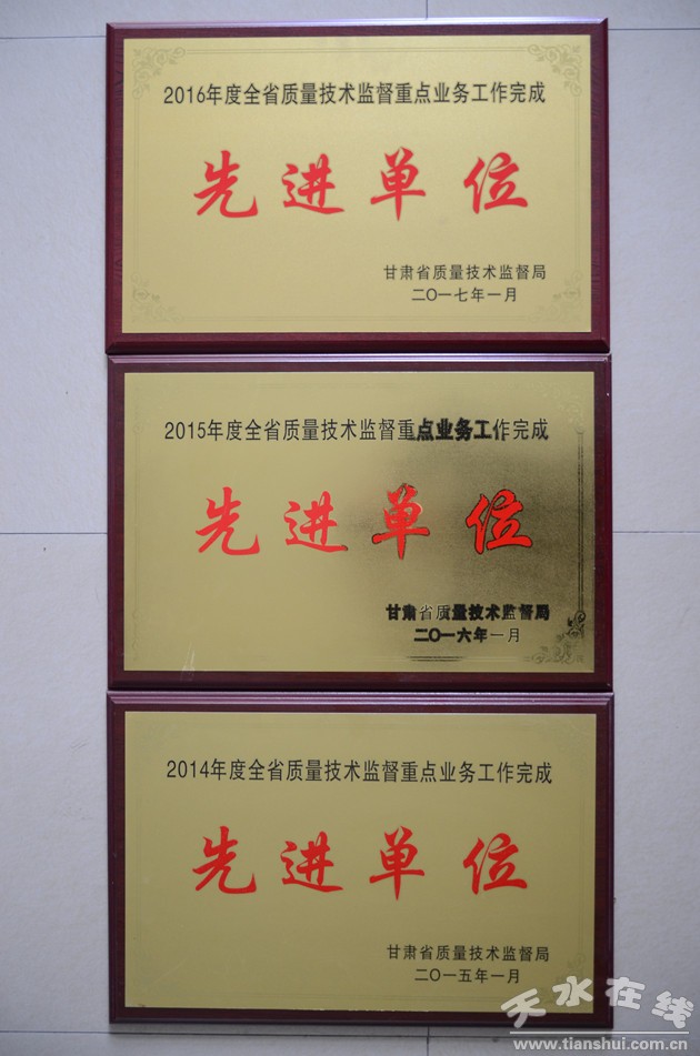 1月17日,全省質(zhì)量技術(shù)監(jiān)督工作會(huì)議在蘭州召開。天水市質(zhì)監(jiān)局被評(píng)為“2016年度全省質(zhì)量技術(shù)監(jiān)督重點(diǎn)業(yè)務(wù)工作完成先進(jìn)單位”。這也是市質(zhì)監(jiān)局自2014年以來(lái)連續(xù)三年榮獲全省質(zhì)監(jiān)系統(tǒng)先進(jìn)單位。