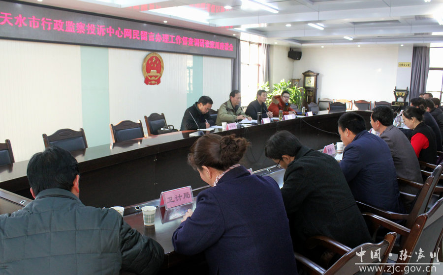 ▲天水市行政監(jiān)察投訴中心主任吉秦玉帶領督查組督查秦安縣網(wǎng)民留言辦理工作。