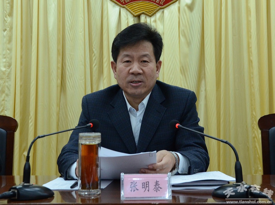 1月18日下午,天水市政協(xié)主席張明泰主持召開(kāi)市政協(xié)七屆一次常委會(huì)議。他強(qiáng)調(diào),要始終堅(jiān)持正確政治方向和履職方向,以開(kāi)展“兩學(xué)一做”學(xué)習(xí)教育為契機(jī),立足本職工作,主動(dòng)作為,改進(jìn)作風(fēng),進(jìn)一步提高履職的質(zhì)量和水平,奮力開(kāi)創(chuàng)政協(xié)工作新局面。