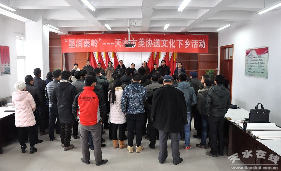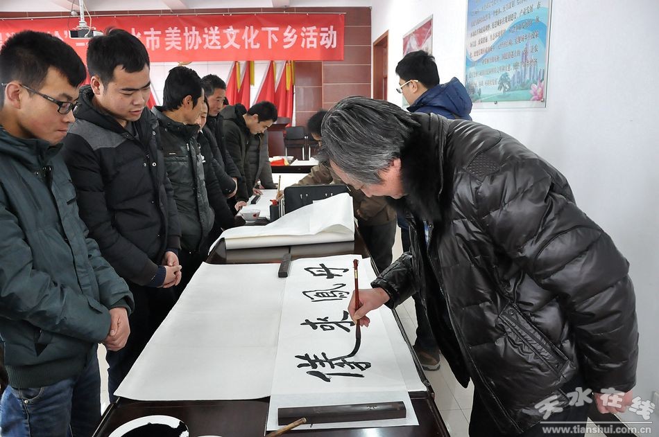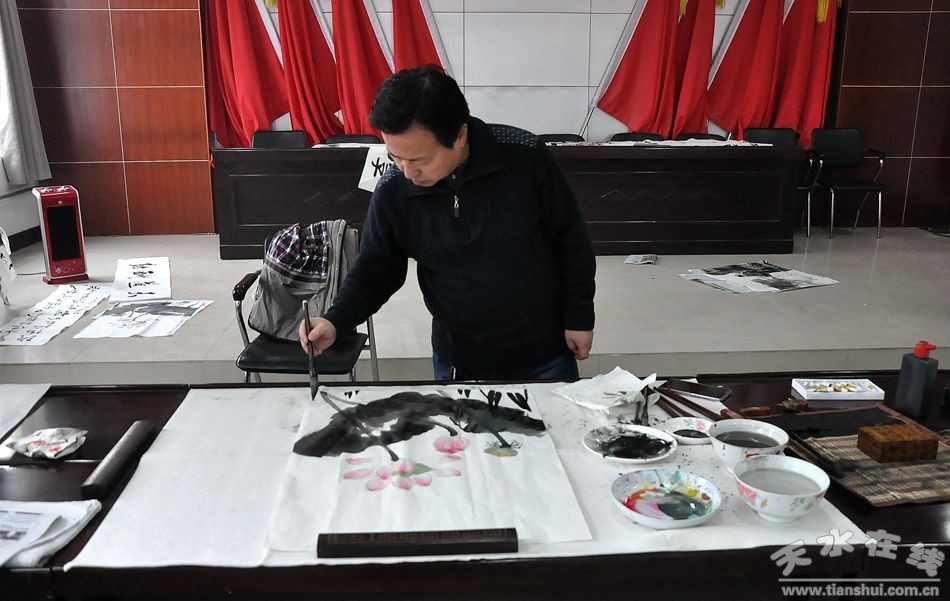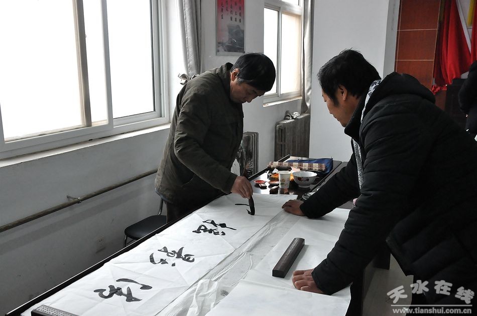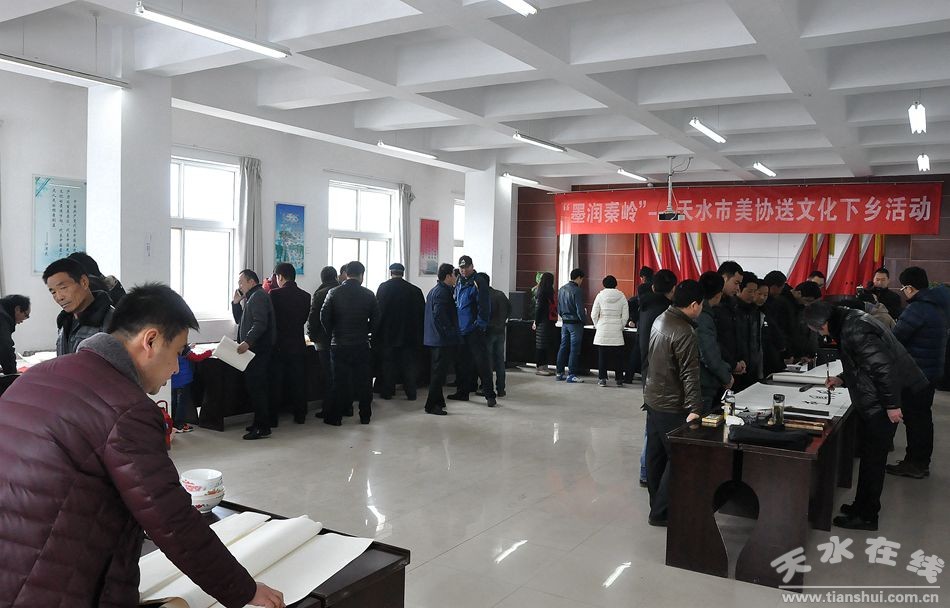1月18日,在新春來臨之際,天水市美術(shù)家協(xié)會(huì)主席賈利珠、副主席靳永紅等8位市美協(xié)成員,走進(jìn)秦州區(qū)秦嶺鄉(xiāng)開展“墨潤秦嶺”文化下鄉(xiāng)活動(dòng)。書畫家們現(xiàn)場(chǎng)揮毫潑墨,創(chuàng)作了一百余幅精美的書畫作品,為秦嶺鄉(xiāng)的鄉(xiāng)親們送去了一場(chǎng)載滿新春祝福的書畫盛宴。