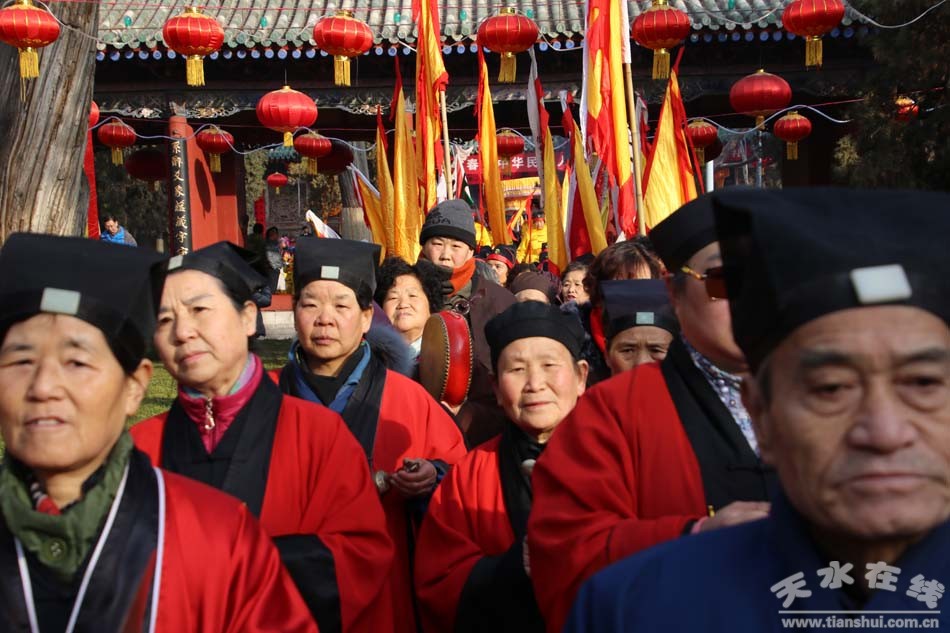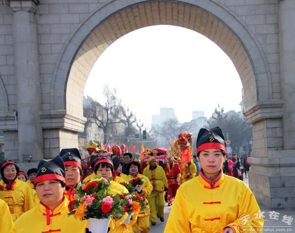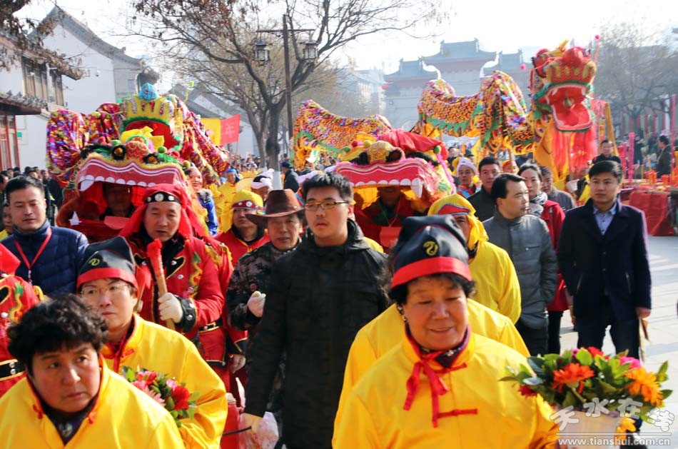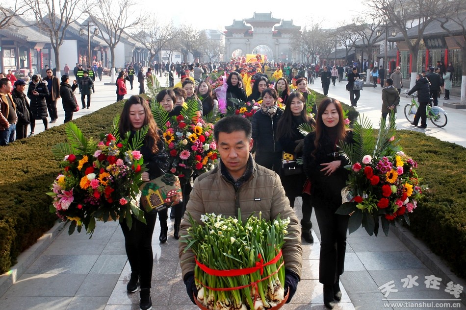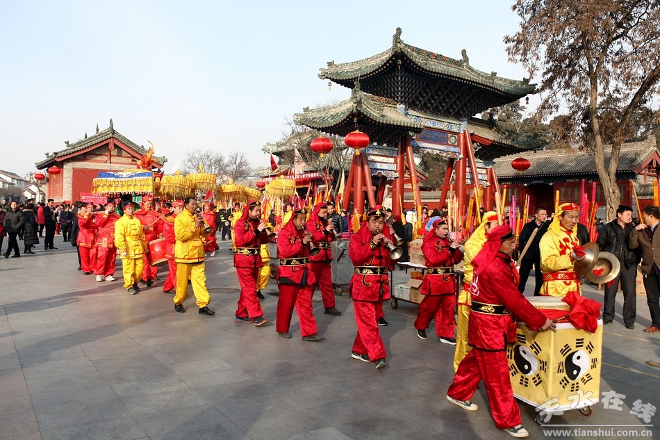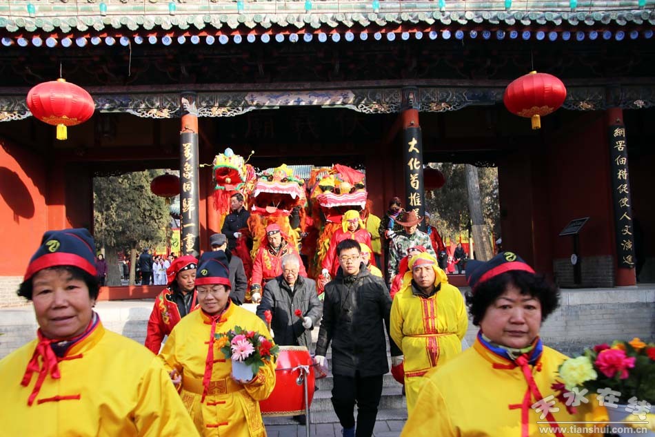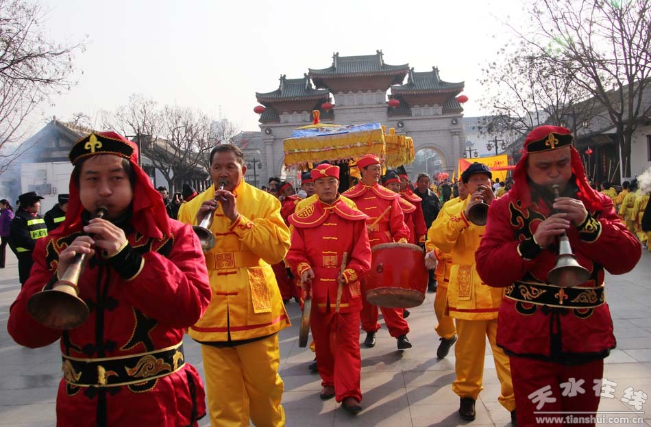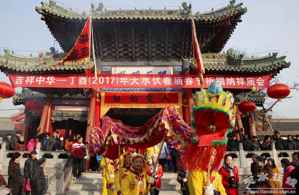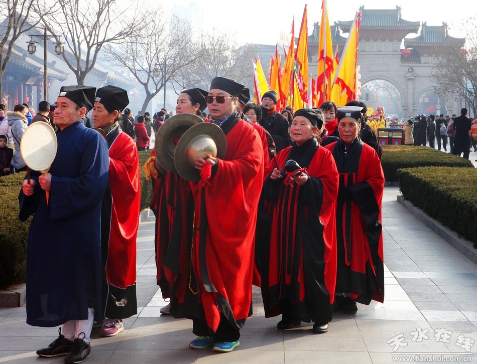 2月9(農(nóng)歷正月十三)日,吉祥中華—丁酉(2017)年天水伏羲廟春祭伏羲活動(dòng)舉行祈福納祥迎圣水儀式。取水供圣儀式結(jié)束后,在伏羲廟大門對(duì)面的戲樓前舉行了出榜文儀式。之后,方神黑爺像在浩浩蕩蕩儀仗隊(duì)伍的“護(hù)駕”下“巡游”伏羲城。