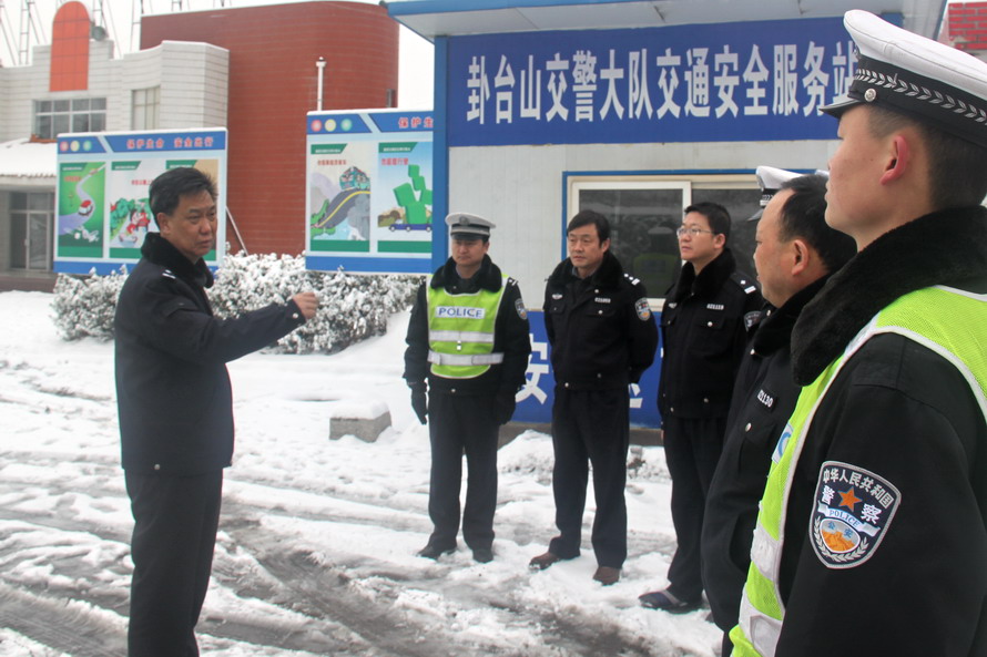 (市公安局交警支隊副支隊長李靜宏督導(dǎo)檢查雪天道路交通安全管理工作)