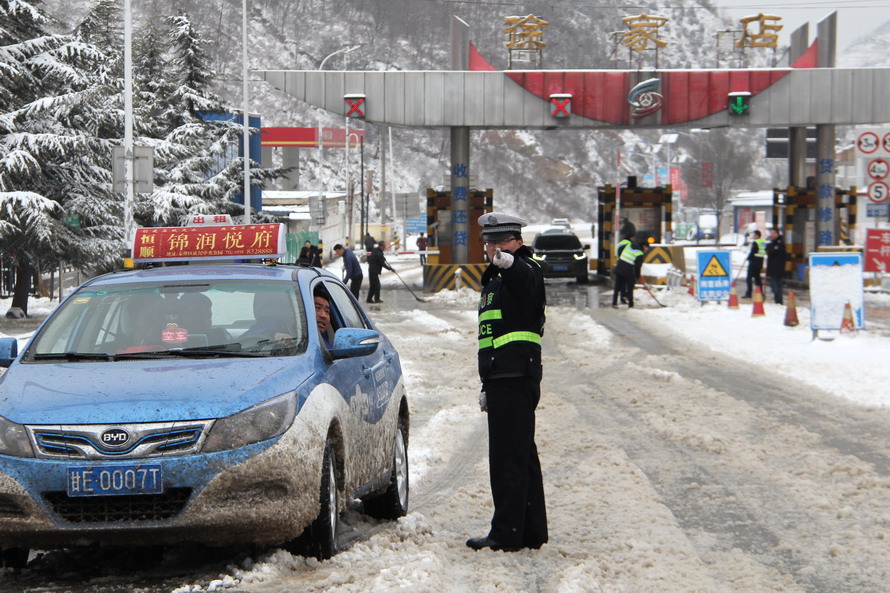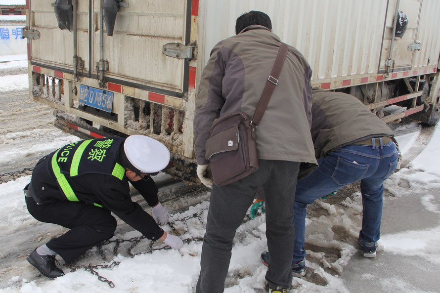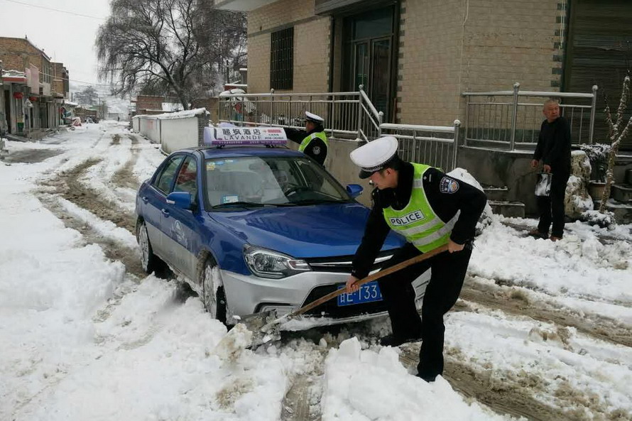 (張家川公安交警雪天保平安)