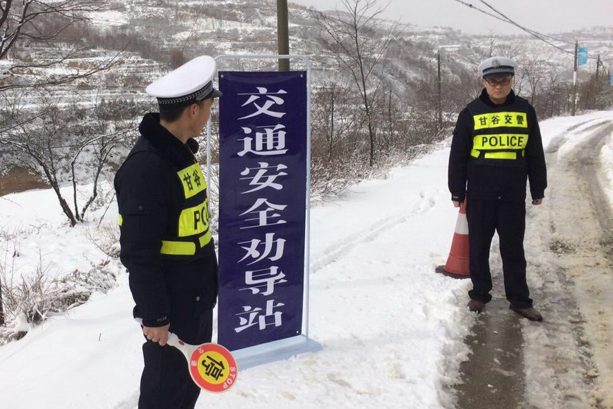 (甘谷公安交警雪天保平安)