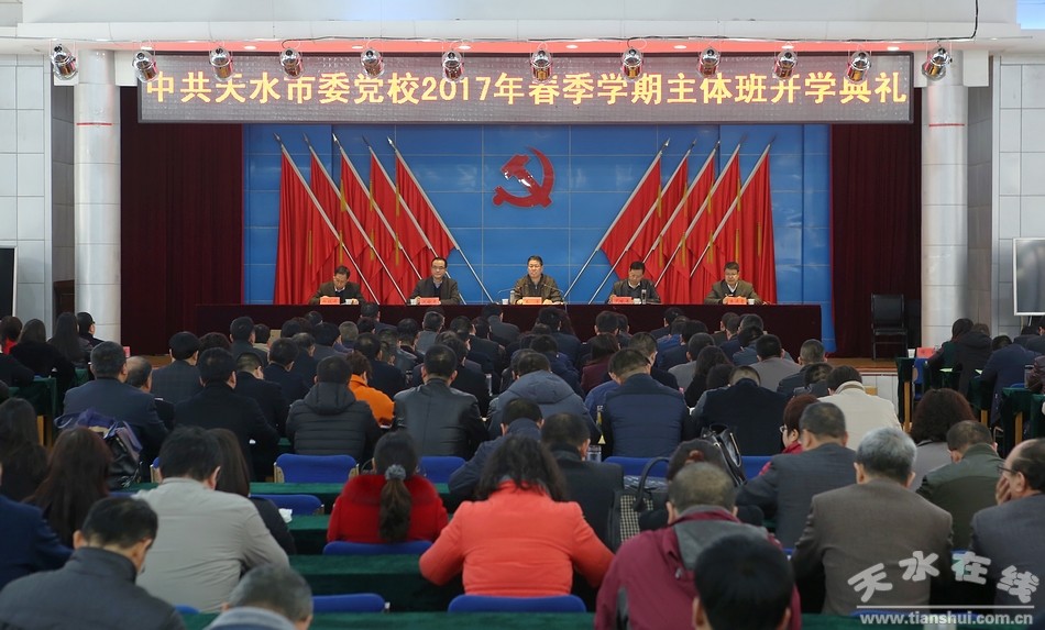 3月1日,天水市委黨校2017年春季學(xué)期第一期主體班開(kāi)班。市委副書記、市委黨校校長(zhǎng)王軍作動(dòng)員講話。第44期縣級(jí)領(lǐng)導(dǎo)干部進(jìn)修班、第36期中青年干部培訓(xùn)班、第48期科級(jí)干部進(jìn)修班、第25期女干部進(jìn)修班等4個(gè)班次的學(xué)員以及市委黨校全體干部職工共300余人參加開(kāi)學(xué)典禮。