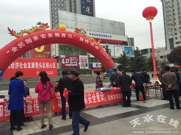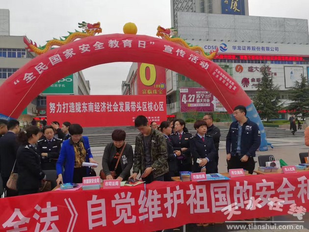 今年4月15日是我國第二個全民國家安全教育日。為加強《國家安全法》等法律的宣傳普及,提升全民國家安全意識,4月15日,天水市在龍城廣場組織開展了主題為“加強法治宣傳教育 增強全民國家安全意識”集中宣傳活動。參加集中宣傳活動的有市國家安全局、市司法局、市法院、市檢察院、市公安局、市教育局、市建設(shè)局、市國稅局等10多家機關(guān)單位。