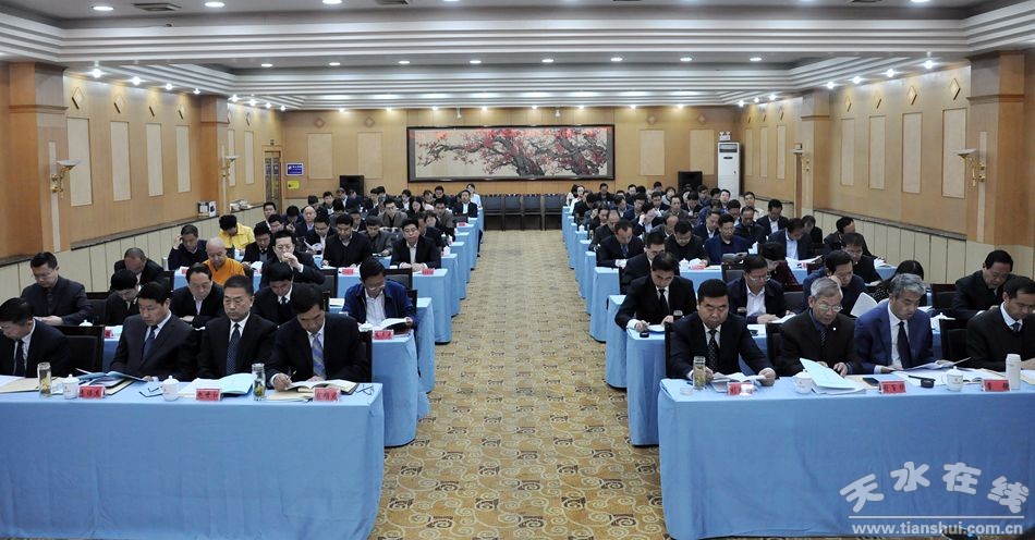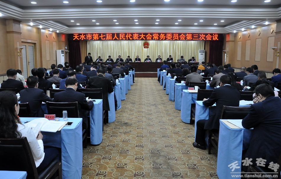 4月27日,天水市七屆人大常委會第三次會議在天水迎賓館召開。市人大常委會黨組書記、主任王光慶主持第一次全體會議。市人大常委會副主任安志宏、張克強、劉天波、宋建平、王曉琴,秘書長楊坤及委員34人出席會議。