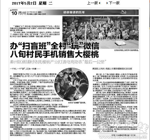 據(jù)介紹,往年,煙鋪村的櫻桃除在市場上銷售外,也有部分村民委托電商企業(yè)進(jìn)行銷售。隨著農(nóng)村智能手機(jī)的普及和微信的普遍使用,今年,為了助力村民拓寬銷售方式,充分發(fā)揮“互聯(lián)網(wǎng)+”的優(yōu)勢,天水在線決定通過網(wǎng)站和微信公眾號全力推介全村村民的微信號,讓消費(fèi)者通過微信直接和村民對接,讓村民通過手機(jī)銷售自家櫻桃,推動當(dāng)?shù)毓蜂N售從傳統(tǒng)銷售方式向現(xiàn)代網(wǎng)絡(luò)銷售方式的轉(zhuǎn)變。