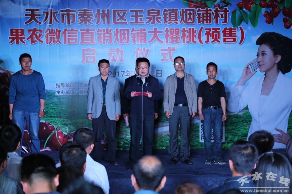 5月12日晚上8時(shí),天水市秦州區(qū)玉泉鎮(zhèn)煙鋪村果農(nóng)微信直銷“煙鋪大櫻桃”(預(yù)售)活動(dòng)啟動(dòng)儀式在煙鋪村文化廣場舉行,天水市委常委、副市長李曉東以微信連線的方式點(diǎn)擊啟動(dòng)了本次“電商助農(nóng)”活動(dòng)。天水市商務(wù)局、秦州區(qū)政府及秦州區(qū)玉泉鎮(zhèn)政府、秦州區(qū)商務(wù)局有關(guān)領(lǐng)導(dǎo),秦州區(qū)16個(gè)鄉(xiāng)鎮(zhèn)分管電商的領(lǐng)導(dǎo)和電商服務(wù)站工作人員及煙鋪村全體村民參加了啟動(dòng)儀式