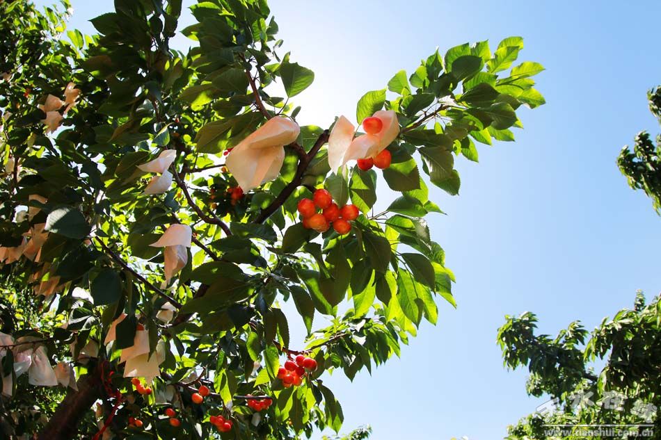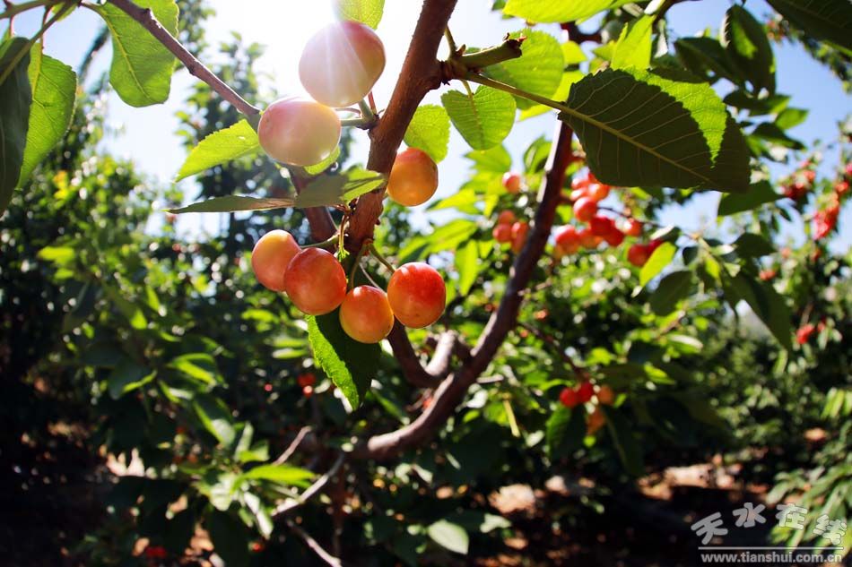 天水市秦州區(qū)玉泉鎮(zhèn)煙鋪村,距市區(qū)僅3公里之遙。這里歷史悠久,七八千年前母系氏族部落就在這里繁衍生息,1963年即被甘肅省人民委員會(huì)列為“古村落遺址”保護(hù)單位。煙鋪村是典型的半濕潤半干旱溫帶氣候,冬無嚴(yán)寒,夏無酷暑,雨量適中,光照充足,肥水中等,土層深厚。得天獨(dú)厚的自然資源優(yōu)勢,特別適宜北方落葉果樹生長和無公害優(yōu)質(zhì)果品生產(chǎn),是我國最佳的大櫻桃生產(chǎn)區(qū)域之一。栽培的品種有紅燈、8-129、美早、意大利早紅、莫莉、早大果、巨紅、佳紅、佐滕錦、勝利、友誼、拉賓斯、8-102、斯坦勒、薩米脫、賓庫、那翁、艷陽、奇好、宇宙、先鋒、雷尼爾、7-101等23個(gè)。2008年,煙鋪大櫻桃被中國綠色食品發(fā)展中心認(rèn)定為綠色食品A級(jí)產(chǎn)品,許可使用綠色食品標(biāo)志。