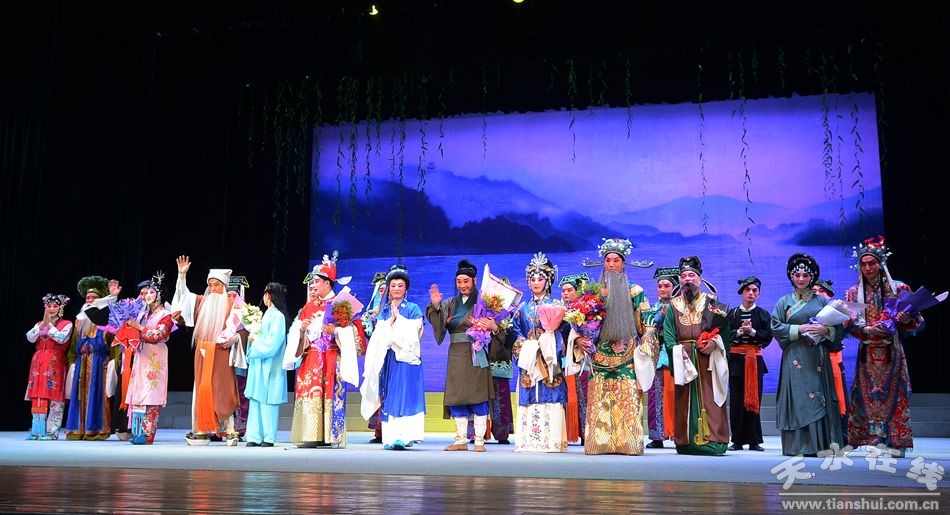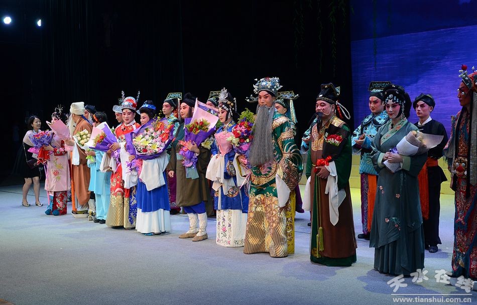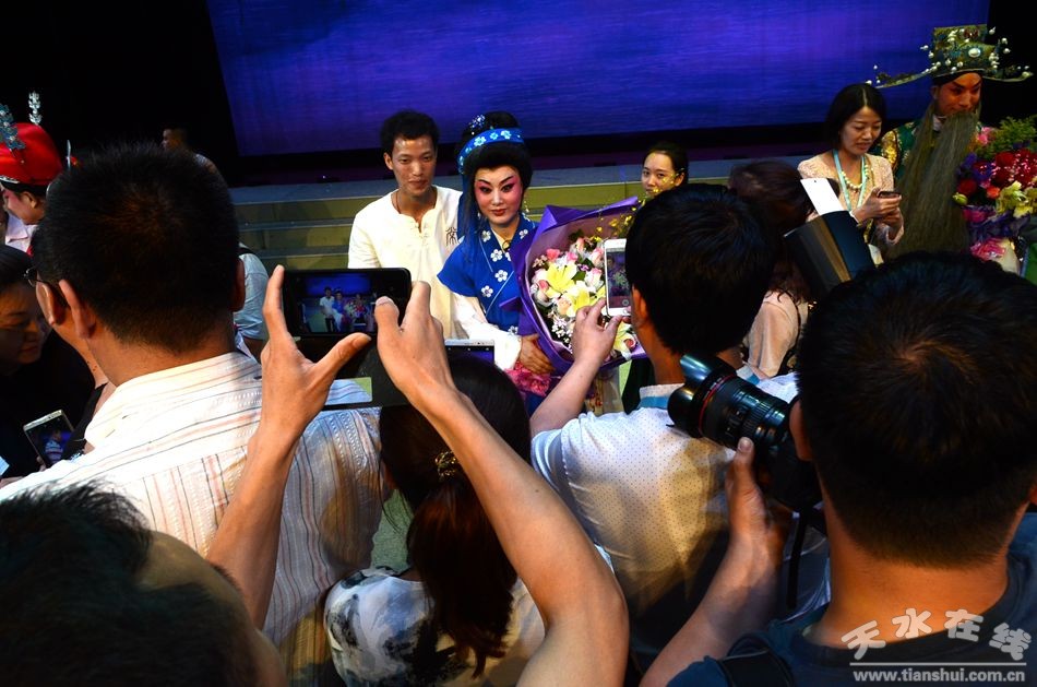 (演出結(jié)束后,天水市委常委、宣傳部長蒲軍接見全體演職人員。)