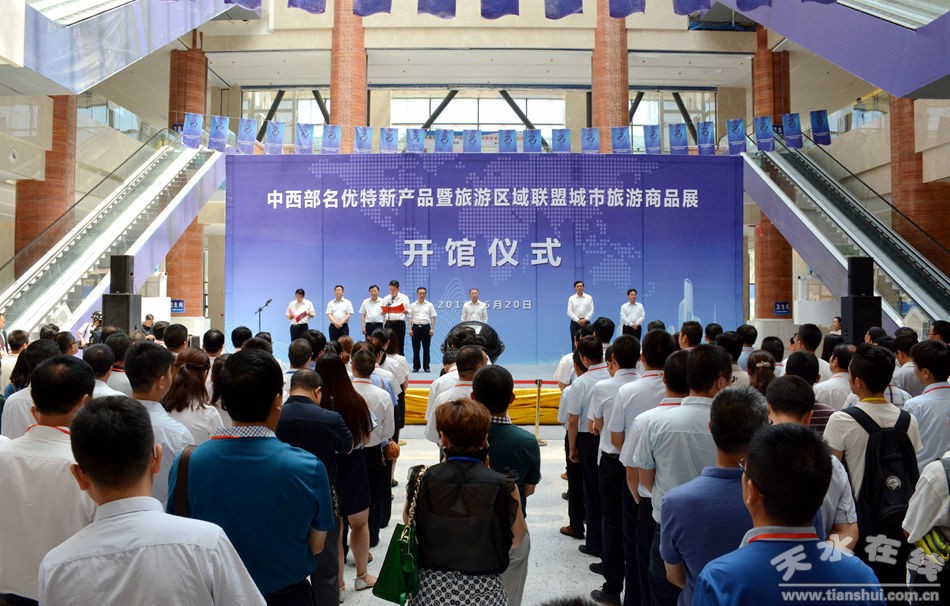 (中西部名優(yōu)新產(chǎn)品暨旅游區(qū)域聯(lián)盟城市旅游商品展開館儀式在天水會(huì)展中心舉行)
