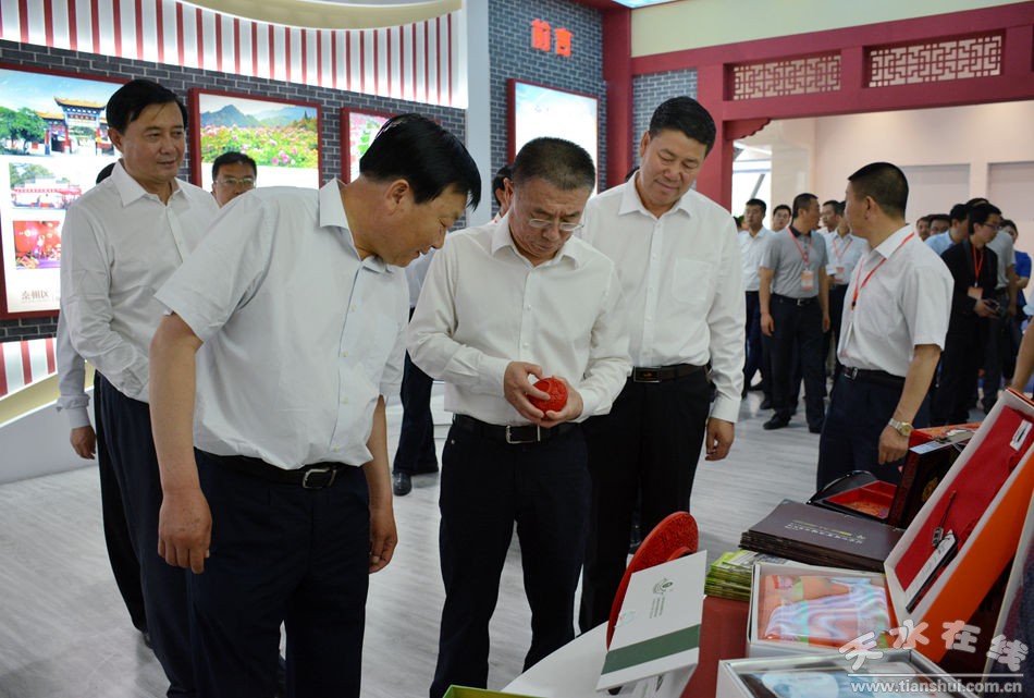 (天水市委書記王銳宣布中西部名優(yōu)新產(chǎn)品暨旅游區(qū)域聯(lián)盟城市旅游商品展開館)