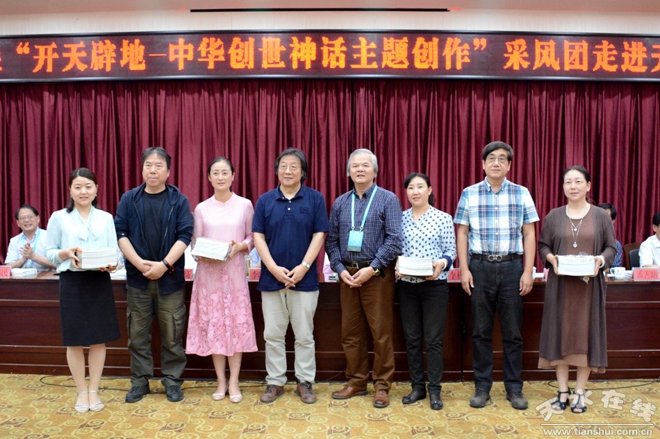 上海市文聯(lián)黨組書記、專職副主席尤存就此次采風(fēng)的目的、意義以及“開天辟地--中華創(chuàng)世神話主題創(chuàng)作”整體工程做了詳細(xì)的介紹。采風(fēng)團(tuán)的專家學(xué)者和天水的學(xué)者專家就“開天辟地--中華創(chuàng)世神話主題創(chuàng)作”以及天水地區(qū)流傳的神話傳說(shuō)、歷史故事做了深入細(xì)致的交流發(fā)言。