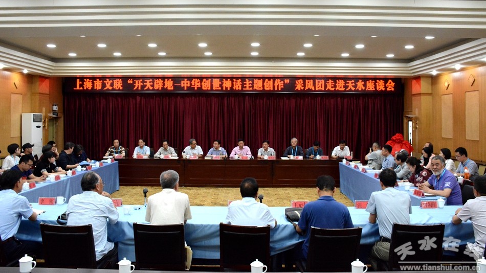 6月21日下午,上海市文聯(lián)“開天辟地--中華創(chuàng)世神話主題創(chuàng)作”采風(fēng)團(tuán)走進(jìn)天水座談會(huì)在迎賓館召開。上海市文聯(lián)黨組書記、專職副主席尤存等28位上海采風(fēng)團(tuán)成員,甘肅省文聯(lián)副巡視員李積麒,天水市委常委、副市長(zhǎng)李曉東等領(lǐng)導(dǎo)以及天水文藝界代表出席了座談會(huì)。