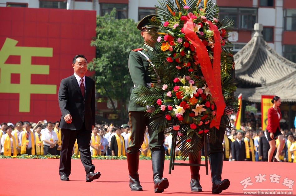 6月22日上午,2017(丁酉)年公祭伏羲大典在天水伏羲廟舉行。中共甘肅省委副書記、省長唐仁健走進(jìn)伏羲廟,敬獻(xiàn)花籃、瞻仰伏羲圣像。
