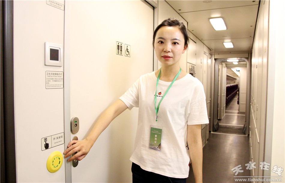聽列車上的工作人員說,D2654次動車組列車共有8節(jié)車廂,1號車廂是1等座,定員48人,2號至8號車廂均為2等座。其中4號車廂中部配備有一個殘疾人衛(wèi)生間,里面帶有一個嬰兒護(hù)理臺,專門為行動不便的人,或者帶有嬰兒的旅客提供便捷服務(wù)。5號車廂是餐吧車,隨時為旅客提供用餐服務(wù)。