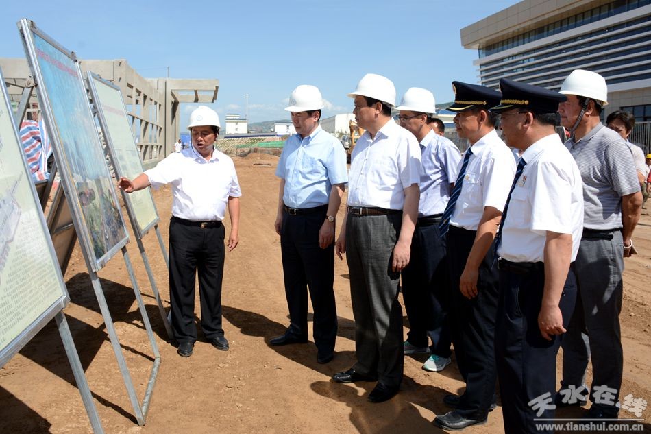 6月22日,蘭州鐵路局局長王峰就寶蘭客專天水南站及其配套設(shè)施建設(shè)情況進行調(diào)研。天水市副市長程偉東一同調(diào)研。