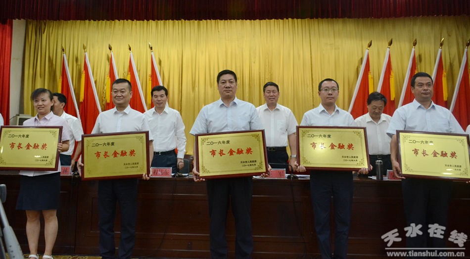 6月30日,2016年度市長金融獎表彰大會暨全市金融工作會議在迎賓館召開。市委副書記、市長王軍出席會議并講話。王軍強(qiáng)調(diào),各級各有關(guān)部門及駐市金融機(jī)構(gòu)要認(rèn)真貫徹落實(shí)省、市部署要求,提升服務(wù)水平,強(qiáng)化監(jiān)督管理,努力開創(chuàng)全市金融工作新局面,為天水經(jīng)濟(jì)社會發(fā)展作出更大貢獻(xiàn),以優(yōu)異成績迎接黨的十九大勝利召開。