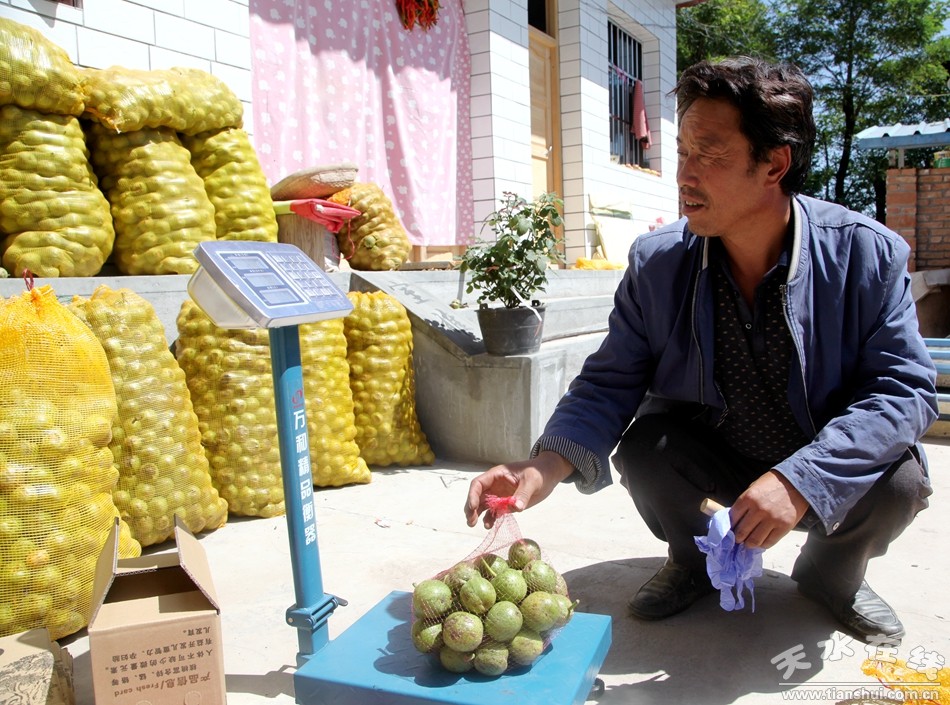 現(xiàn)在,田新華每天最忙的就是搗騰手機。所謂微信直銷,就是通過天水在線宣傳推廣村民的微信二維碼,客戶掃碼添加銷售核桃的村民,在微信上商談購買,達成一致后,村民通過微信收款,然后發(fā)貨,完成交易。
