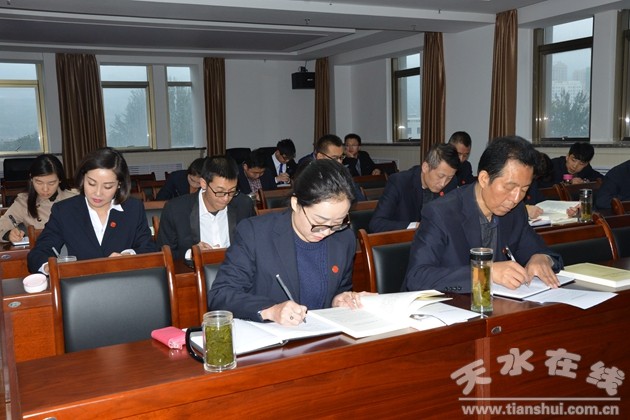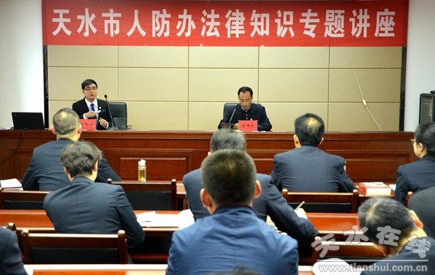 10月13日下午,天水市人防辦黨支部書記蔡向增主持會議,組織召開全體黨員大會,開展第十次“黨員固定活動日”活動。會上,組織學習了《習近平總書記系列重要講話讀本》第六章“全力推進法治中國建設(shè)”部分內(nèi)容,邀請甘肅端方律師事務(wù)所馬強強律師作了《憲法,孜孜以求》為主題的法制講座。
