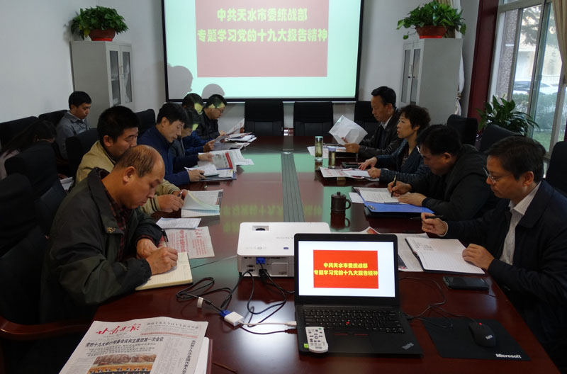 10月23日上午,天水市委統(tǒng)戰(zhàn)部召開會議,圍繞“十九大報(bào)告”開展專題學(xué)習(xí)。市委常委、統(tǒng)戰(zhàn)部部長溫利平主持學(xué)習(xí)會議,常務(wù)副部長劉鋒,副部長邢赟、介晉峰及機(jī)關(guān)全體干部職工參加學(xué)習(xí)。