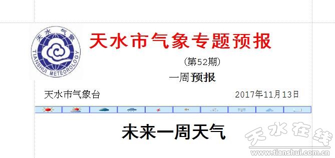 未來(lái)一周我市沒有明顯的降水過(guò)程,天氣以多云為主,其中15-16日多云間陰,局部地方陰有小雨。具體預(yù)報(bào)如下:13-14日多云間晴,15-16日多云間陰、局部地方陰有小雨,17日多云,18日多云轉(zhuǎn)晴,19日晴間多云。氣溫預(yù)報(bào)以秦州區(qū)為例,日最低氣溫0~5℃,日最高氣溫9~14℃,日平均氣溫6~10℃。