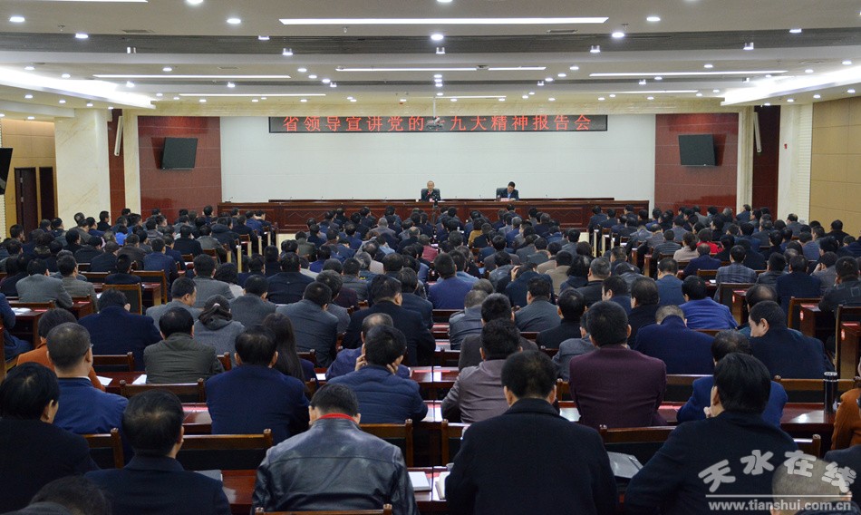 黃強(qiáng)在宣講中指出,黨的十九大是在全面建成小康社會決勝階段、中國特色社會主義進(jìn)入新時(shí)代的關(guān)鍵時(shí)期召開的一次十分重要的大會。大會取得的一系列重大成果,在黨和國家發(fā)展進(jìn)程中具有歷史性意義。天水市各級黨委政府要把學(xué)習(xí)宣傳貫徹黨的十九大精神作為當(dāng)前和今后一個(gè)時(shí)期的首要政治任務(wù),思想上高度重視,行動(dòng)上高度自覺,結(jié)合本地本部門實(shí)際進(jìn)行專題學(xué)習(xí)和研討,對標(biāo)要求、帶著問題去學(xué),確保學(xué)深悟透、把握實(shí)質(zhì)、融會貫通。