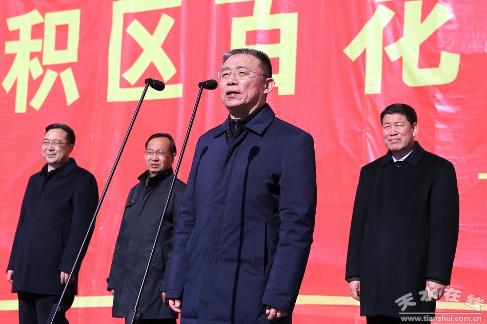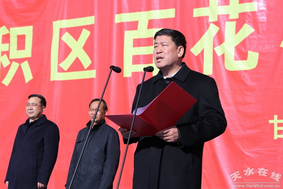 12月19日上午,麥積區(qū)保利·上河雅頌、渭濱佳苑、百花小鎮(zhèn)等12個(gè)重點(diǎn)建設(shè)項(xiàng)目集中開(kāi)工。 市委書(shū)記王銳宣布項(xiàng)目開(kāi)工。