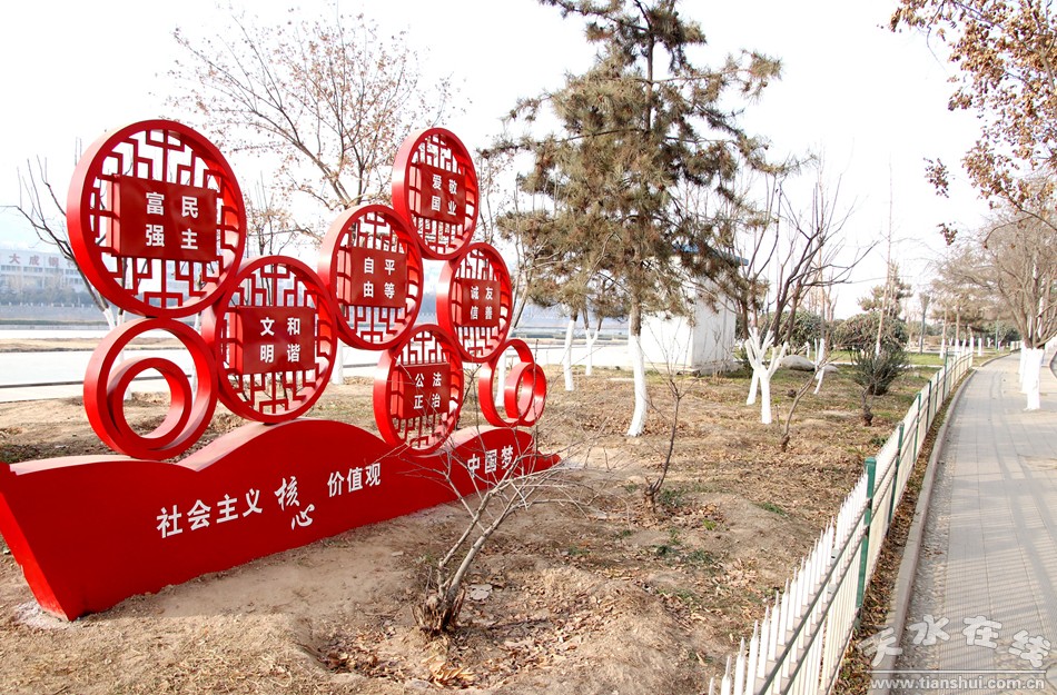 12月6日,市民常先生和往常一樣在藉河風(fēng)情線徒步晨練,與平日里不同是,沿途新增的以“中國紅”為主調(diào)的社會(huì)主義核心價(jià)值觀宣傳牌讓他眼前一靚,這些以“中國結(jié)”、“傳統(tǒng)折扇”、“揚(yáng)帆遠(yuǎn)航”等為主題的小品景觀,不僅裝點(diǎn)了藉河風(fēng)情線,也讓市民感受了社會(huì)主義核心價(jià)值觀深入人心的溫暖。