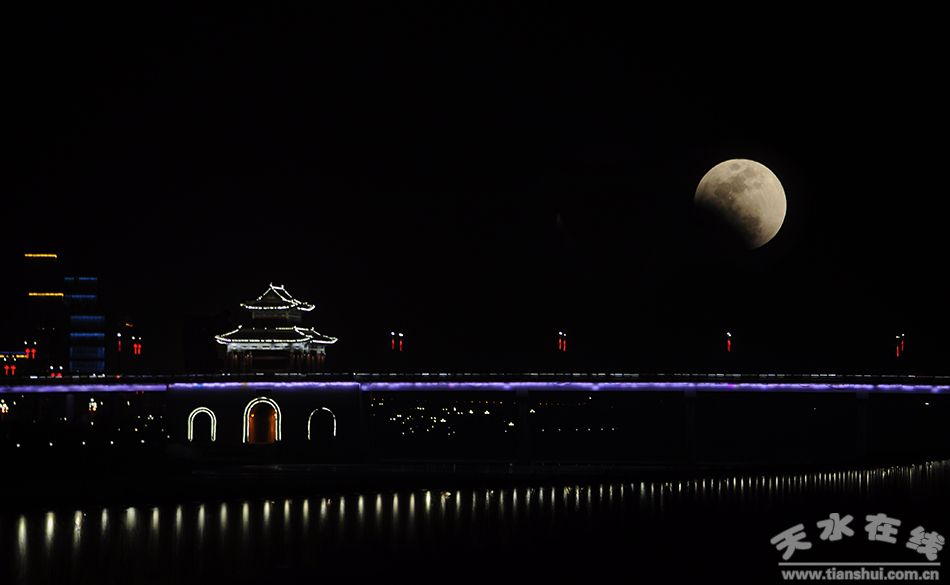 天水在線報道 1月31日晚,古城天水上空上演罕見的超級“藍”月全食,“藍月亮”、“紅月亮”、“超級月亮”組團亮相。天水在線派出6路人馬,在秦州區(qū)天水湖、天秀橋、紅橋、龍城廣場和麥積區(qū)翠湖、馬跑泉公園等地進行了拍攝。據(jù)說上一次發(fā)生這樣的巧合,可以追溯到152年前的1866年3月31日。