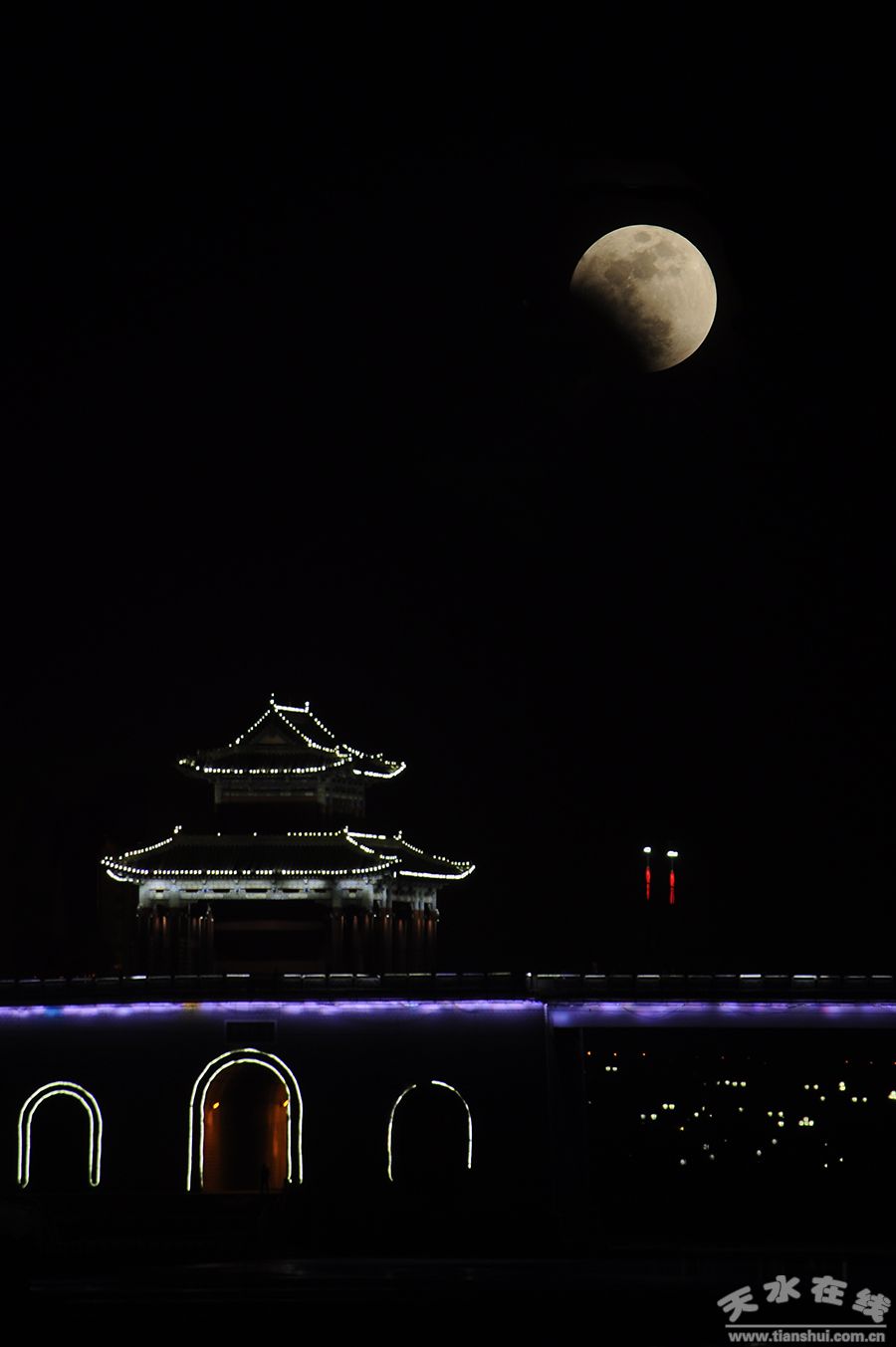 (天水在線1月31日晚攝于天秀橋 攝影:煙雨閣)
