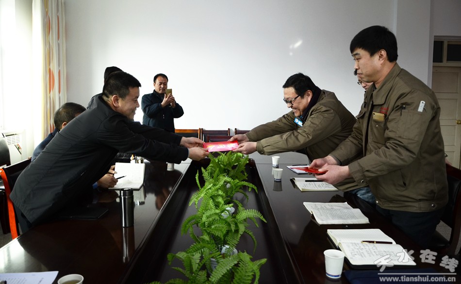 1月31日,天水市副市長郝文杰帶領(lǐng)相關(guān)單位負(fù)責(zé)人來到甘肅海林中科科技股份有限公司,看望慰問聯(lián)系專家縣鵬宇和劉剛,向他們送去了新春祝福和慰問金。