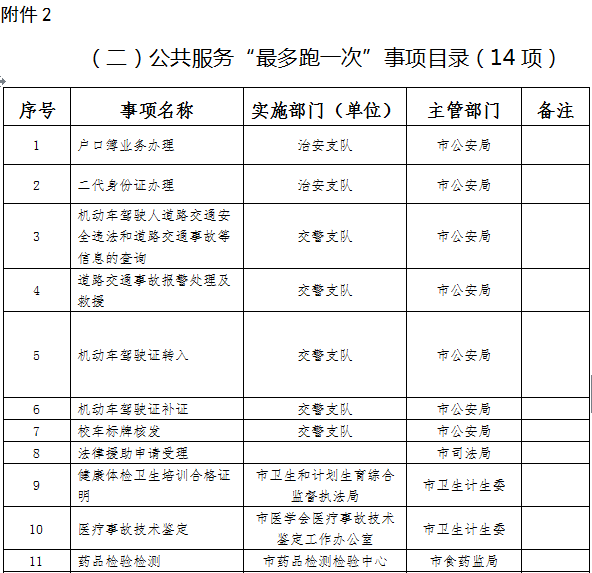 2.公共服務(wù)“最多跑一次”事項(xiàng)目錄(14項(xiàng))