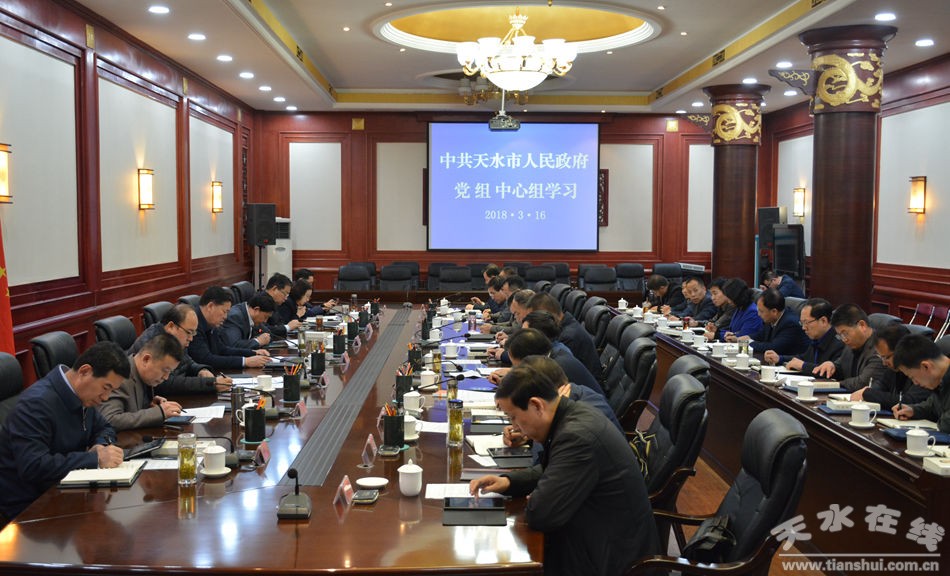 3月16日下午,天水市政府黨組書記、市長(zhǎng)王軍主持市政府黨組理論學(xué)習(xí)中心組學(xué)習(xí),原原本本學(xué)習(xí)了黨的十九屆三中全會(huì)公報(bào)、習(xí)近平總書記在2018年春節(jié)團(tuán)拜會(huì)上的重要講話、《習(xí)近平談治國(guó)理政》第二卷第一個(gè)專題有關(guān)內(nèi)容和中央、省、市貫徹執(zhí)行中央八項(xiàng)規(guī)定精神的有關(guān)文件。市政府黨組副書記趙衛(wèi)東,黨組成員宮輝、張建杰、郝文杰、王燕、程偉東、王祥林參加。
