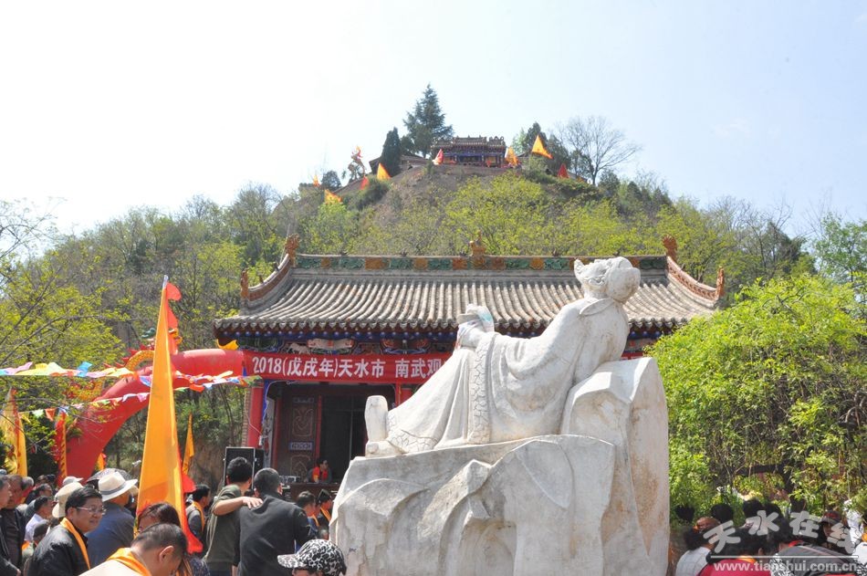 現(xiàn)占地面積30多畝的南武觀,于1992年開始由幾位鄉(xiāng)賢發(fā)起募捐修復(fù),然后受到七里墩、十里鋪、曹家梗、張家溝、羅玉溝、巷口村等十八村民大力支持,齊心協(xié)力籌資,先后建起仿明古建筑真武大殿、三宵殿、財神殿、方神殿、山神土地殿、山門、文昌殿、寺廟、戲樓、工作室等13殿30多間,雕塑神像27尊,大型壁畫39幅。成為秦州城東大門知名道觀圣地,旅游和觀景者絡(luò)繹不絕,每年三月三日廟會熱鬧非凡。