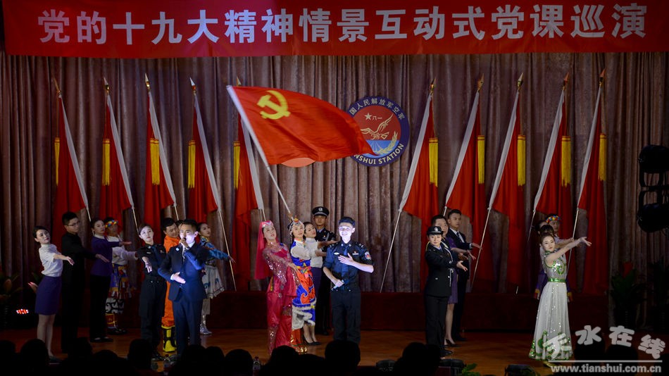 5月7日,西部機(jī)場集團(tuán)學(xué)習(xí)宣傳貫徹黨的十九大精神情景互動(dòng)式黨課走進(jìn)天水機(jī)場,天水機(jī)場公司、駐場單位全體員工、駐場空軍部隊(duì)部分官兵與天水市委宣傳部、發(fā)改委、財(cái)政局、公安局、文化和旅游局、團(tuán)市委相關(guān)單位人員共同觀看了演出。天水市副市長張建杰出席并觀看巡演活動(dòng)。