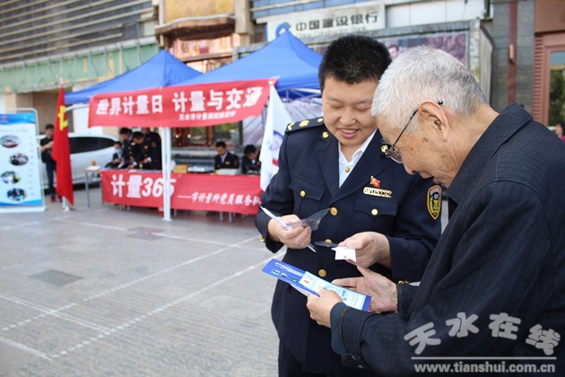 四是共青團天水市委與市質(zhì)監(jiān)局“計量365”黨員服務(wù)隊在天水蘭天城市廣場聯(lián)合舉辦了世界計量日“計量與交通”主題宣傳與計量科學(xué)展示活動。市質(zhì)監(jiān)局精心設(shè)計制作了雷達測速計量檢定、出租車計價器檢定主題展板、以及印有創(chuàng)建“全國質(zhì)量強市示范城市”內(nèi)容的橫幅、宣傳彩頁、三角板、直尺及汽車挪車電話牌等。專業(yè)技術(shù)人員還現(xiàn)場展示了衡器與雷達測速儀檢測專業(yè)設(shè)備,并向群眾示范講解,普及計量檢測科學(xué)知識;顒舆^程中,共發(fā)放各類宣傳資料500余份,解答群眾現(xiàn)場咨詢100余次,并多次為消費者和商家免費稱重,調(diào)解計量糾紛,受到群眾一致好評。此外,市計量所“計量365”黨員服務(wù)隊多次深入社區(qū)、學(xué)校、醫(yī)院及“雙聯(lián)”扶貧村等開展質(zhì)量宣傳、技術(shù)咨詢和計量服務(wù)。今年以來,免費檢定計量器具500余臺(件),發(fā)放宣傳資料1000余份,服務(wù)企事業(yè)單位、社區(qū)群眾350余人次,充分展示了質(zhì)監(jiān)隊伍的良好形象,贏得了廣大人民群眾的認可與好評。