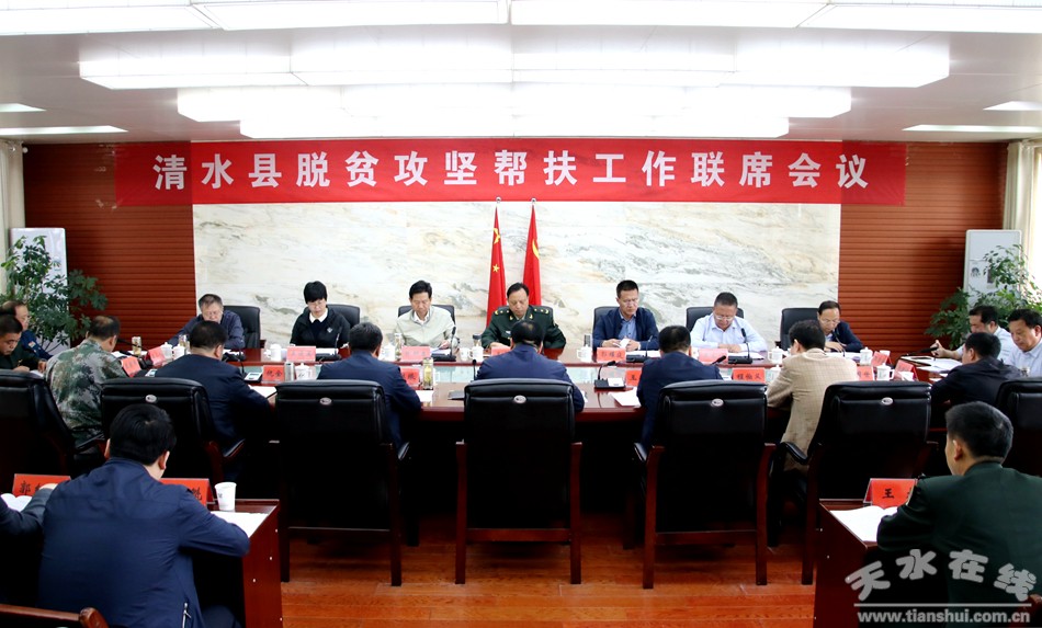 5月15日,省、市直單位在清水縣召開脫貧攻堅(jiān)幫扶工作聯(lián)席會(huì)議,研究部署清水縣脫貧攻堅(jiān)工作。省軍區(qū)司令員王文清在會(huì)上強(qiáng)調(diào),各級(jí)幫扶單位要進(jìn)一步增強(qiáng)“四個(gè)意識(shí)”,提高政治站位,堅(jiān)決貫徹習(xí)近平總書記脫貧攻堅(jiān)重要指示,按照省委的部署要求,堅(jiān)定信心、凝心聚力,扎實(shí)推進(jìn)脫貧攻堅(jiān)各項(xiàng)任務(wù)落實(shí),確保清水縣與全國、全省一道如期脫貧。