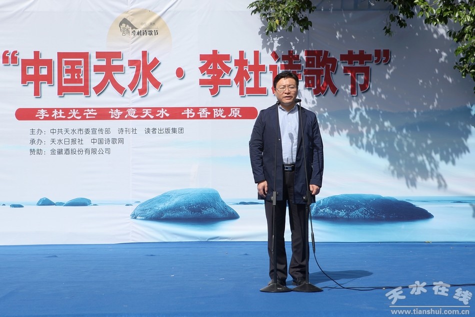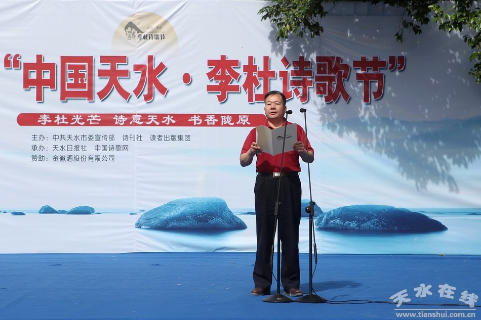 (天水市委常委、宣傳部長蒲軍宣布第三屆“中國天水•李杜詩歌節(jié)”開幕。)
