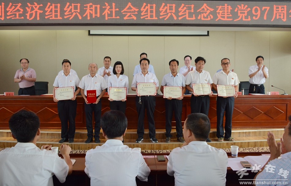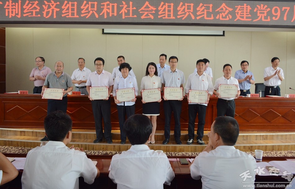 6月28日,天水市非公有制經(jīng)濟(jì)組織和社會(huì)組織工委組織召開(kāi)會(huì)議,紀(jì)念建黨97周年,并對(duì)全市非公經(jīng)濟(jì)組織和社會(huì)組織20個(gè)先進(jìn)基層黨組織、27名優(yōu)秀共產(chǎn)黨員、29名優(yōu)秀黨務(wù)工作者進(jìn)行了表彰。市非公經(jīng)濟(jì)組織和社會(huì)組織工委委員,市級(jí)兩新組織黨組織負(fù)責(zé)人,各縣區(qū)組織、民政、工商部門和市直有關(guān)社會(huì)組織業(yè)務(wù)主管部門分管領(lǐng)導(dǎo),以及受表彰的全體先進(jìn)基層黨組織負(fù)責(zé)人、優(yōu)秀共產(chǎn)黨員、優(yōu)秀黨務(wù)工作者共140人參加了會(huì)議。