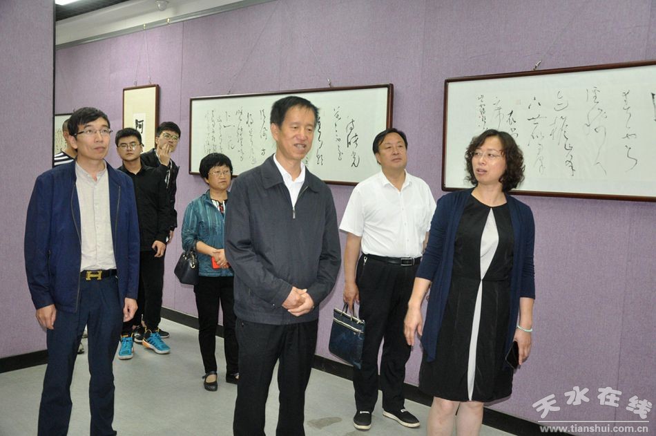 7月11日,由天水市文學(xué)藝術(shù)界聯(lián)合會、天水美術(shù)館、天水書畫院共同主辦的“十方微塵·顧柯紅書法絲路行” 天水第一展在市書畫院展出。市政協(xié)副主席蘇定武出席開幕式,并參觀了展覽。