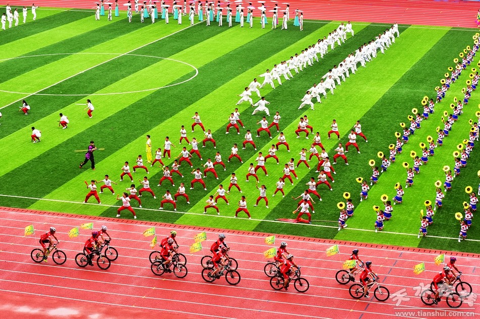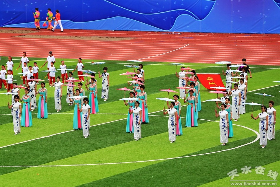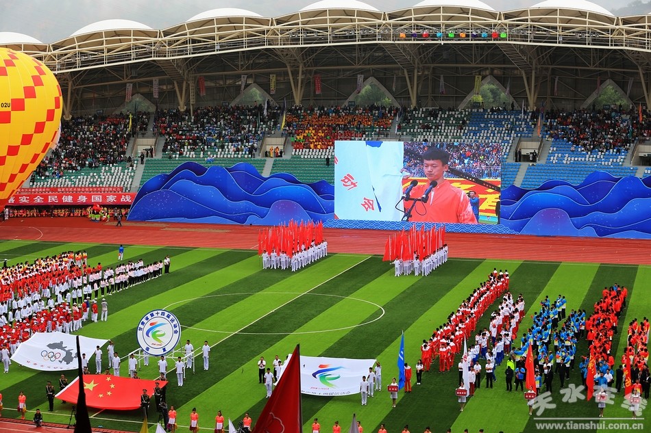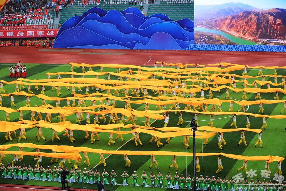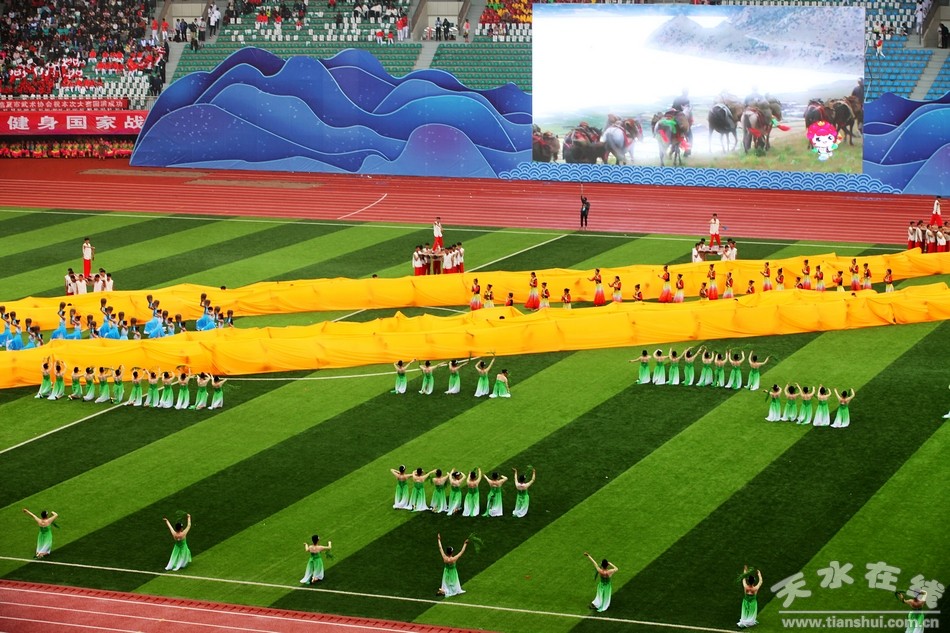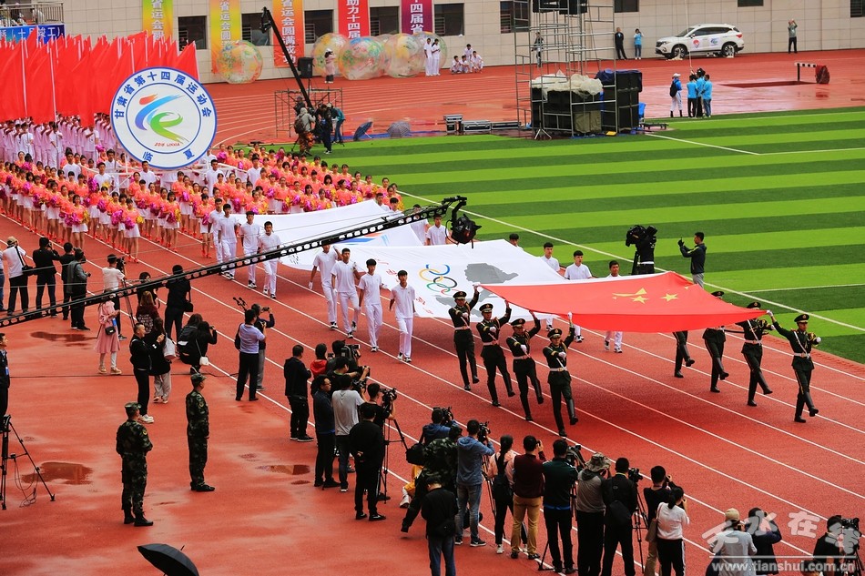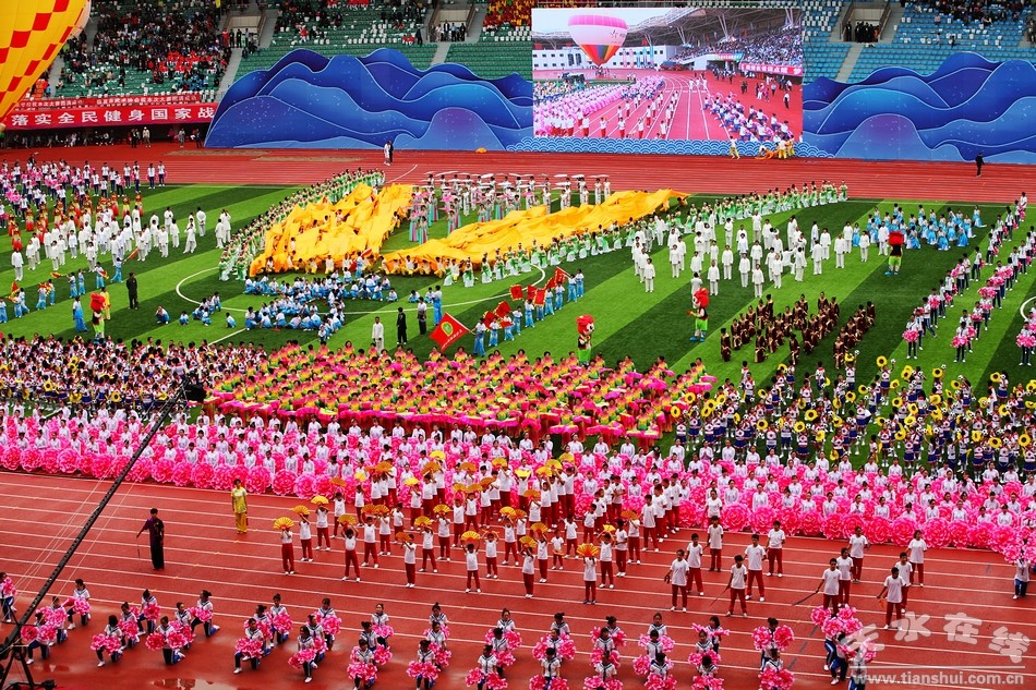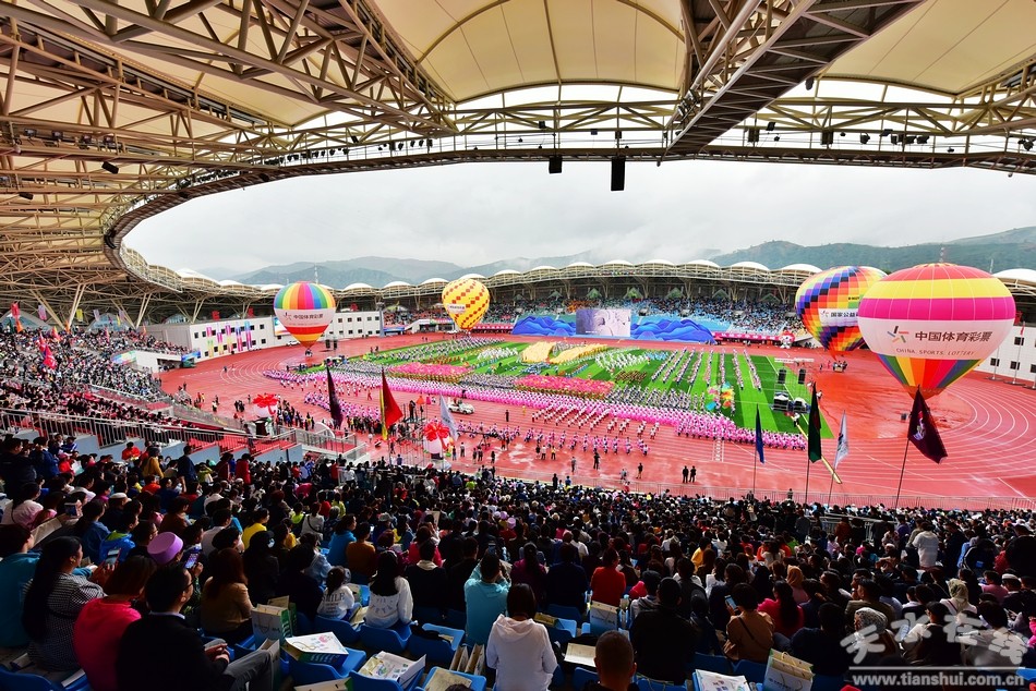 天水在線臨夏訊 8月16日上午9時,甘肅省第十四屆運(yùn)動會開幕式在臨夏奧體中心體育場舉行。開幕式主要內(nèi)容為入場儀式、火炬?zhèn)鬟f、主火炬點(diǎn)燃和大型文藝表演。其中大型文藝表演分《序》《茶道古韻》《美麗臨夏》《共享省運(yùn)》《尾聲》五個章節(jié),共由2400名演出志愿者完成。