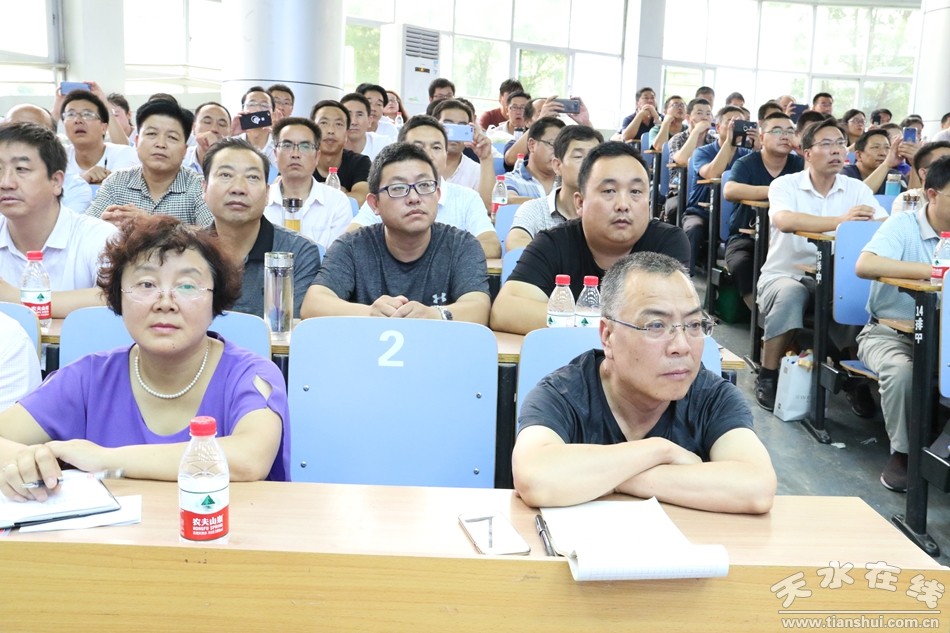 宮輝在講座中首先引用自己在全市基層學(xué)校調(diào)研的案例,以科學(xué)真實(shí)的天水基礎(chǔ)教育數(shù)據(jù)為支撐,論述了“一位好校長就能辦出一所好學(xué)!钡慕逃},拋出了“好校長是什么樣的?天水需要什么樣的校長?如何成為天水好校長?”三個方面的問題,然后用“靈魂軀體論、個性素養(yǎng)論、人際角色論、規(guī)模差異論、價值追求論”詮釋了校長角色的內(nèi)涵以及現(xiàn)代校長必須具備的優(yōu)秀品質(zhì),緊接著以天水教育當(dāng)前面臨的基礎(chǔ)教育均衡化、中小學(xué)教師隊(duì)伍縣管校聘改革、新高考改革、學(xué)前教育發(fā)展、全面改薄工程、農(nóng)村教師宿舍周轉(zhuǎn)房工程、農(nóng)村學(xué)校供熱溫暖工程等重點(diǎn)工作任務(wù)為切入點(diǎn),突出強(qiáng)調(diào)了培養(yǎng)一大批好校長對于推動天水教育提速發(fā)展的重要性和迫切性。