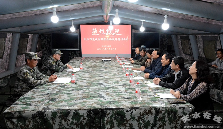 受天水市委書記王銳、市長(zhǎng)王軍委托,帶著全市人民的深情厚誼,8月16日,市委副書記趙衛(wèi)東、市人大常委會(huì)副主任王曉琴、市政協(xié)副主席郭明興帶領(lǐng)相關(guān)部門負(fù)責(zé)人,看望慰問了正在甘南藏族自治州外訓(xùn)的駐市部隊(duì)官兵,為他們送去慰問品,并代表市委、市人大、市政府、市政協(xié)及天水軍分區(qū)向參加外訓(xùn)的全體官兵致以親切的問候和崇高的敬意。