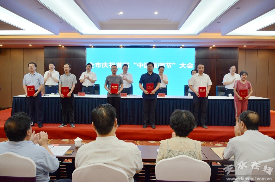 2018年8月19日是首個“中國醫(yī)師節(jié)”。當(dāng)天上午,全市慶祝首個“中國醫(yī)師節(jié)”暨優(yōu)秀醫(yī)師表彰大會在天水賓館舉行,共同慶祝全體醫(yī)務(wù)工作者的節(jié)日。