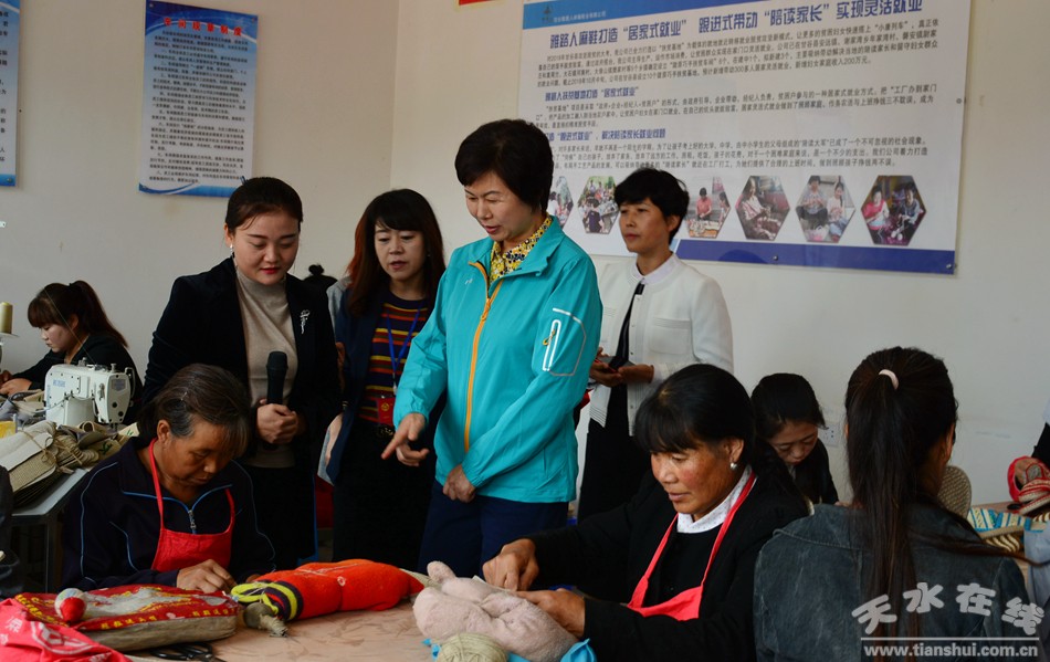 (在六峰鎮(zhèn)六峰村巾幗扶貧車間示范點(diǎn)觀摩)