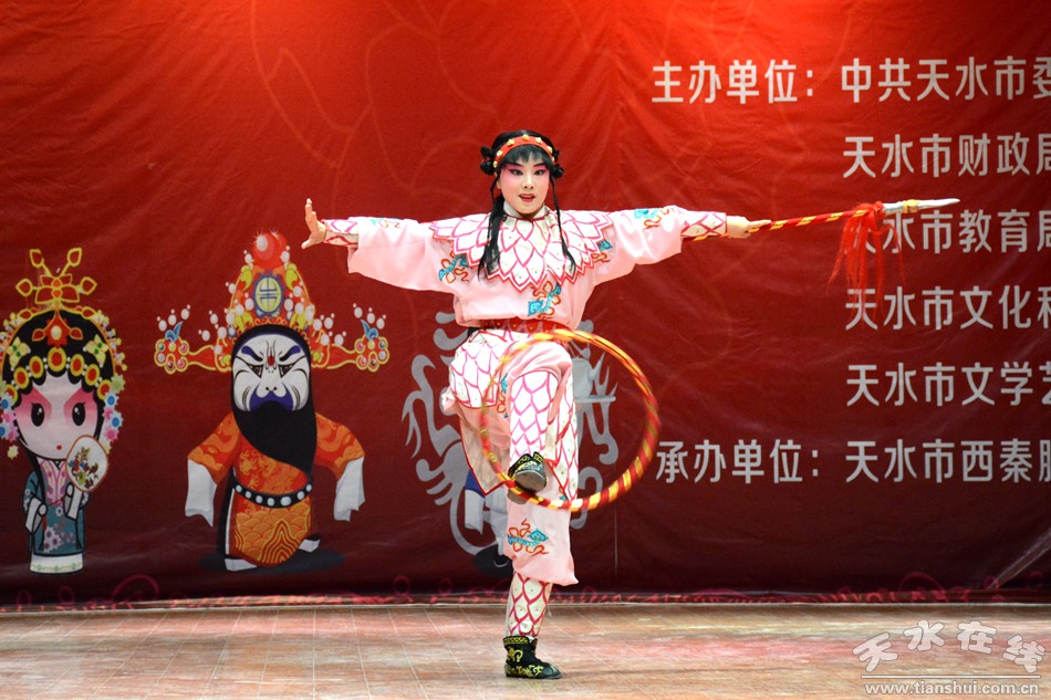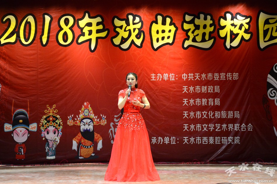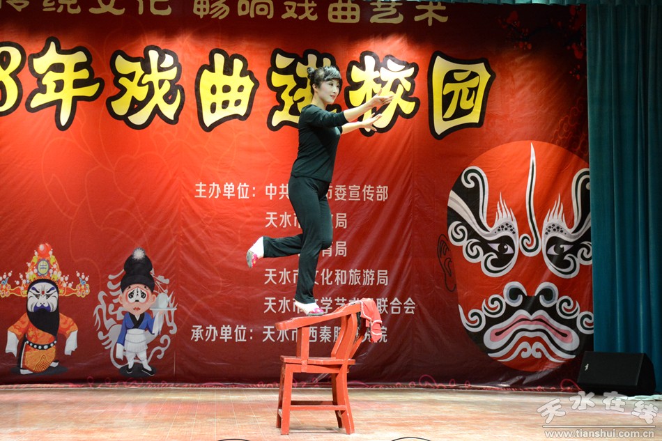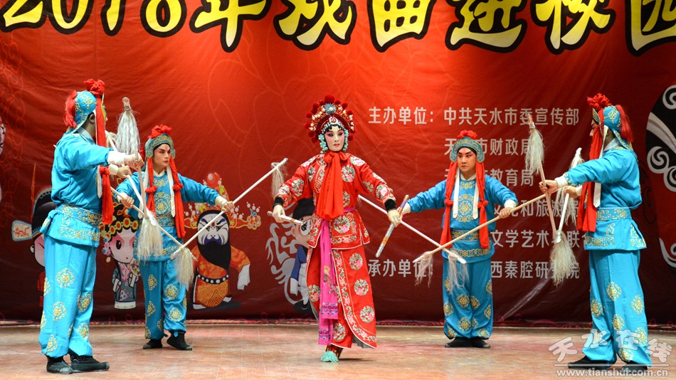 9月18日,2018年天水市“戲曲進(jìn)校園”主題活動走進(jìn)天水市職業(yè)技術(shù)學(xué)校。天水市西秦腔研究院副院長袁丫丫等40多位秦腔藝術(shù)家,為職業(yè)技術(shù)學(xué)校800余名師生表演了戲曲技巧展示、擊樂合奏、把子組合,以及傳統(tǒng)秦腔劇目經(jīng)典唱段,贏得了廣大師生的一致好評。