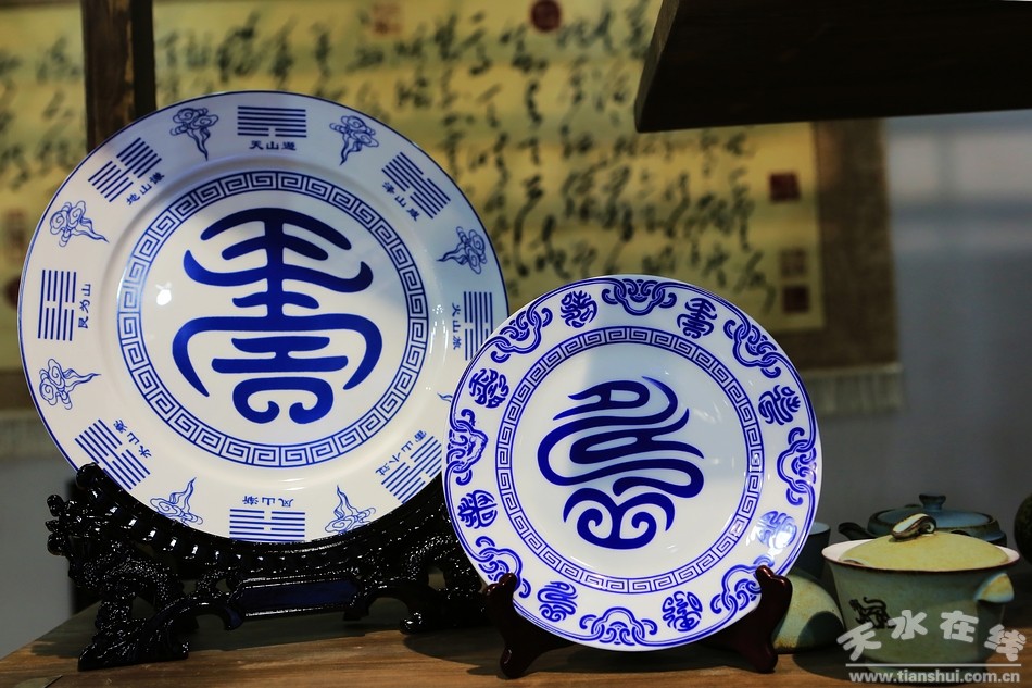 (天水市委書(shū)記王銳,市委常委、宣傳部部長(zhǎng)張建杰參觀“羲皇故里·天水文化創(chuàng)意產(chǎn)品展”展廳。)