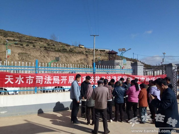 10月17日是第五個國家扶貧日。為了創(chuàng)造良好的鄉(xiāng)村法治環(huán)境,助推精準扶貧工作,喚起社會各界扶貧幫困意識,激發(fā)貧困群眾內(nèi)生發(fā)展動力,確保幫扶村全面建成小康目標如期實現(xiàn),天水市司法局充分發(fā)揮司法行政職能優(yōu)勢,由黨組成員、副局長溫建平帶領(lǐng)優(yōu)秀律師、公證員一行8人到幫扶村武山縣城關(guān)填黑溝村、龍臺填馬年村開展法律咨詢志愿服務和入戶對接宣傳等系列活動,送法進鄉(xiāng)村,面對面解答村民法律問題。